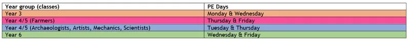 Here is the current P.E. timetable for 2025-26